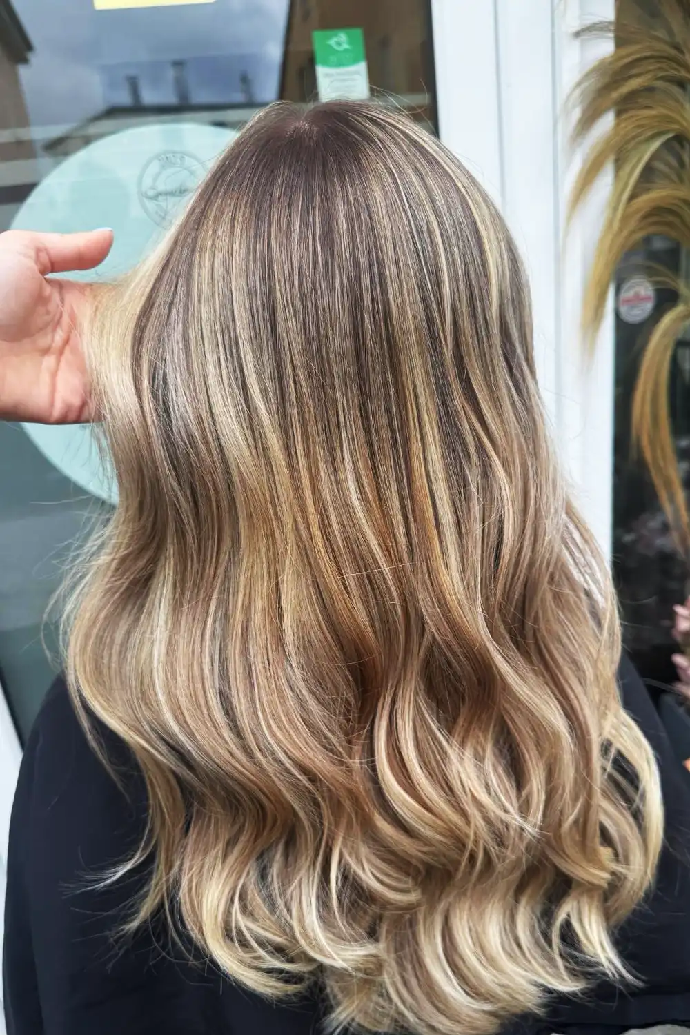 Air Touch Balayage: Hier konzentrieren wir uns auf die mittleren Längen und Spitzen. Dein Ansatz bleibt natürlich, und die Aufhellung verläuft wie ein sanfter Schimmer nach unten.